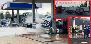 L’autista scappa via dopo il danno. “Self control” del personale. Area chiusa per 2 ore. Vigili del fuoco e Polizia autostradale TEANO (Elio Zanni) –