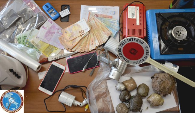 Durante l’attività di p.g., svolta anche con l’ausilio di unità cinofile e di personale del Reparto Prevenzione Crimine Campania, veniva inoltre sottoposto a sequestro l’impianto di videosorveglianza installato presso l’abitazione della famiglia Sfoco e venivano rimosse da personale dei Vigili del Fuoco delle grate in ferro poste a protezione dei locali in cui avveniva l’attività di taglio e confezionamento della sostanza stupefacente. Entrambi gli arrestati venivano associati al carcere di Santa Maria Capua Vetere a disposizione dell’Autorità Giudiziaria.