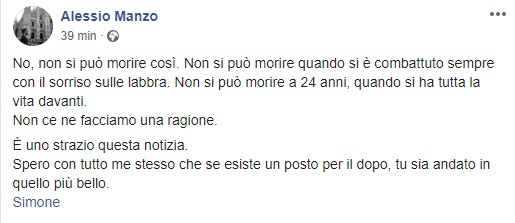 Capua (d.l. ) – Sono ormai passate diverse ore ma Capua resta incredula alla notizia della morte di simone mauro. Era un bravo ragazzo Simone , figlio di una famiglia di commercianti ortofrutticoli di Capua con attività fuori Porta Roma molto conosciuta.