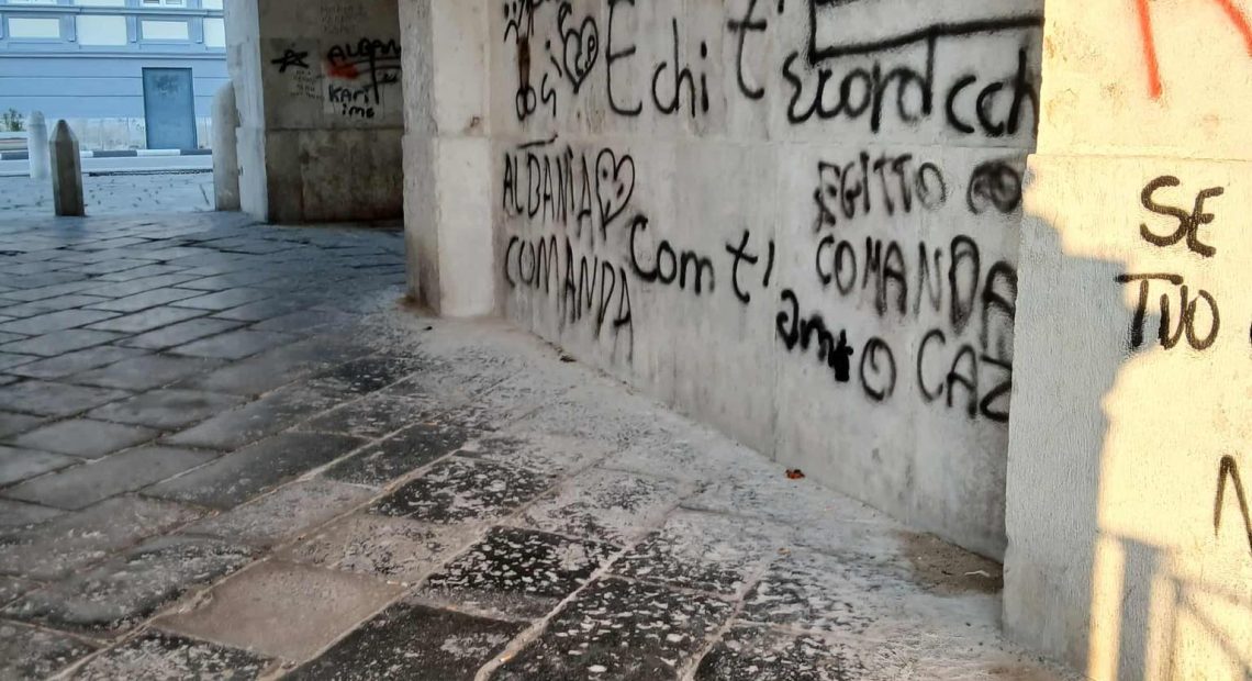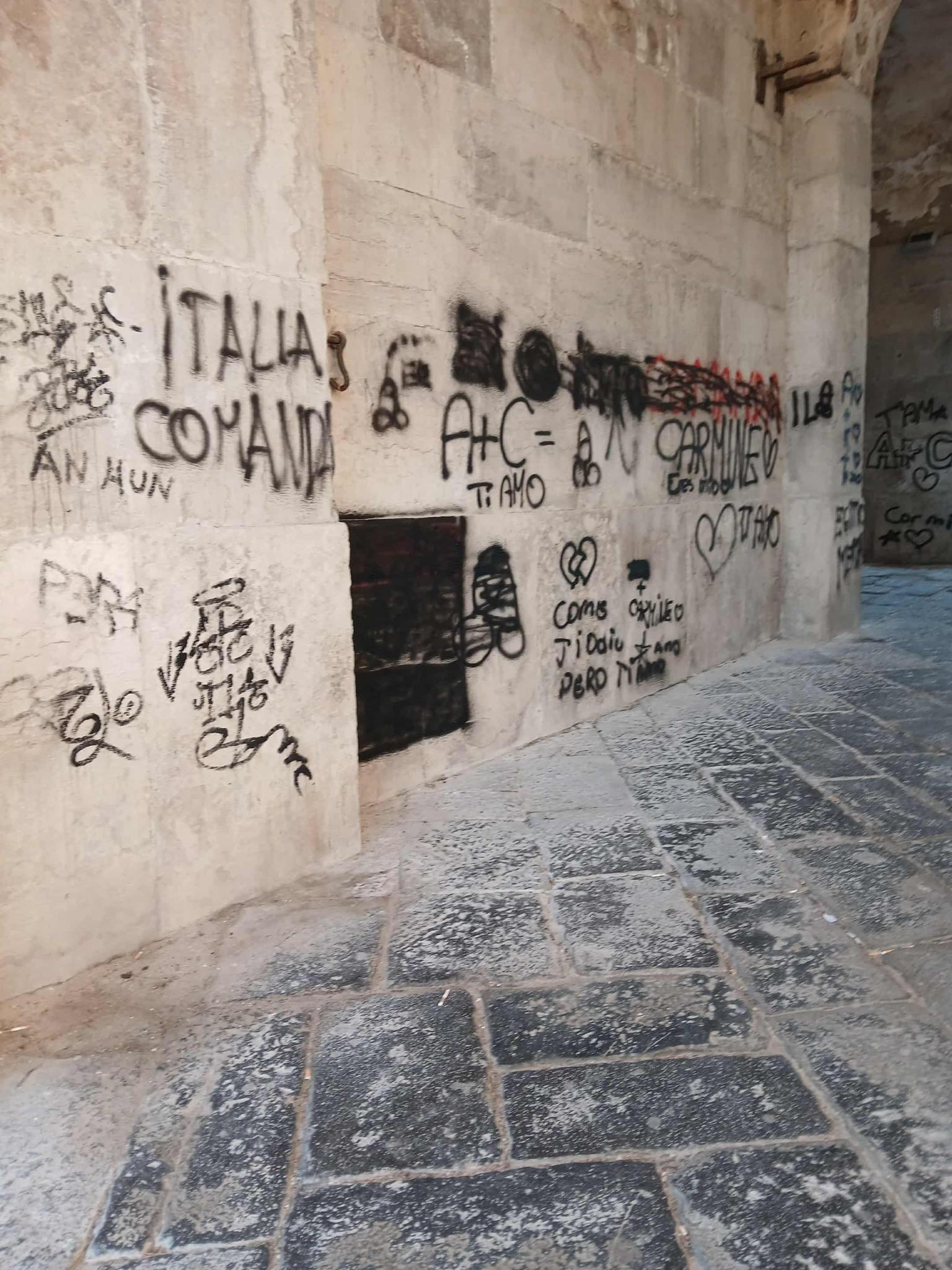A raccontare il raid sono alcune immagini condivise nei social dalla dottoressa Laura Lonardo, che alleghiamo in calce a questo articolo, e che parlano chiaro: superfici deturpate, trasformate in caricature grottesche con occhi e bocche disegnate, a pochi metri dal Teatro Ricciardi, altro simbolo monumentale cittadino. Un atto compiuto senza che nessuno sia intervenuto fino ad ora per rimuovere le scritte o per individuare i responsabili.