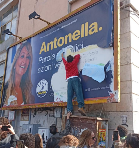 IL VIDEO. Blitz dei pro Pal. Danneggiati i manifesti della consigliera regione della Lega, Antonella Piccerillo. Zinzi: “E’ successo anche a Napoli, azioni intimidatorie e inaccettabili”