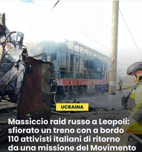 Giorni fa, durante uno dei tanti bombardamenti russi contro i civili ucraini – nella guerra di invasione putiniana che il movimentismo progressista si rifiuta di vedere, anzi aspettando la resa dell’Ucraina, che tenta persino di privare di armi e mezzi – un razzo bellico ha sfiorato un convoglio ferroviario pieno di pacifisti italiani. Circa 110 aderenti al Movimento Europeo di Azione Non Violenta erano a bordo di un treno nella zona di Leopoli, di ritorno da una missione di pace, quando un missile li sfiorava fortunatamente senza conseguenze.