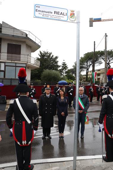 Alla cerimonia hanno presenziato autorità istituzionali, religiose e militari. In particolare si è avuta la partecipazione del Comandante Interregionale Carabinieri “Ogaden”, Generale di Corpo d’Armata Vittorio Tomasone, del Comandante della Legione Carabinieri Campania Generale di Divisione Maurizio Stefanizzi, del Prefetto di Caserta S.E. Raffaele Ruberto, del Vescovo della Diocesi di Caserta S.E. Monsignor Giovanni D’Alise, del Sindaco di Caserta, Avv. Carlo Marino, del Procuratore Capo presso la Procura della Repubblica di Santa Maria C.V. Dott.ssa Maria Antonietta Troncone e del Procuratore Capo presso la Procura della Repubblica di Napoli Nord, Dott. Francesco Greco, nonché numerose altre autorità locali. La madrina dell’evento è stata la signora Matilde Grasso, moglie del V. Brig. Emanuele Reali, Medaglia d’Oro al Valor Civile, al quale è stata intitolata la strada.