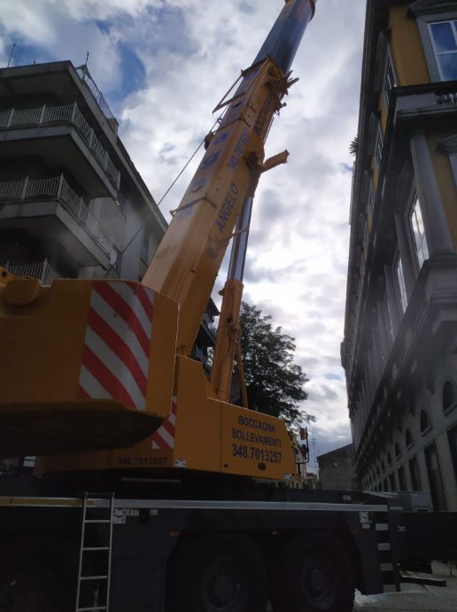 CASERTA. Messa in sicurezza di un tetto con un’enorme gru. Corso Giannone di nuovo chiuso al transito