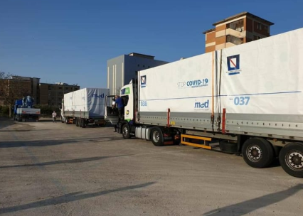 CORONAVIRUS. LE FOTO CASERTA. Arrivati i camion per la realizzazione di nuovi posti di Terapia Intensiva