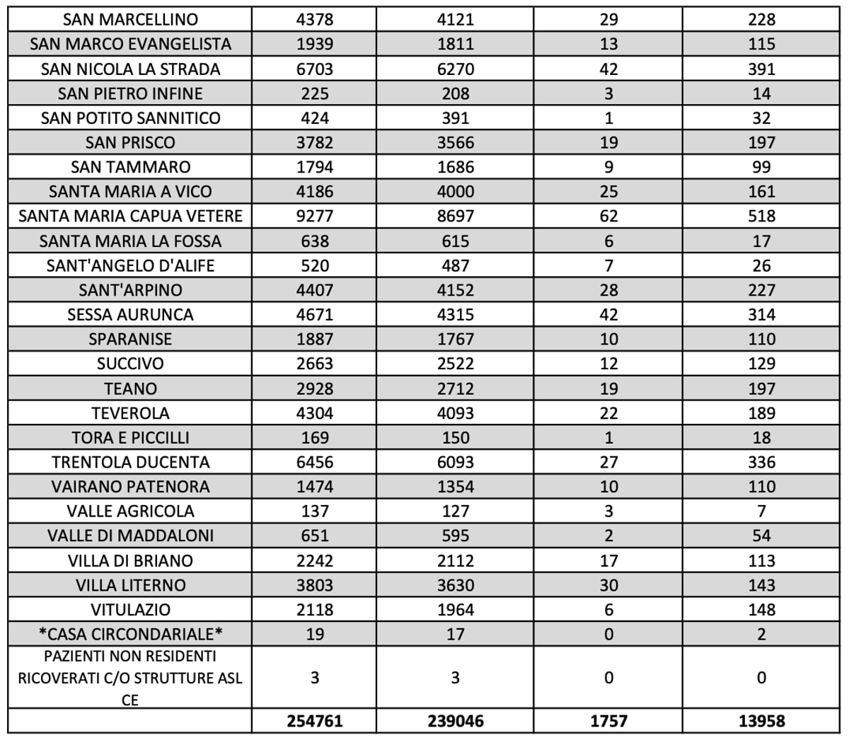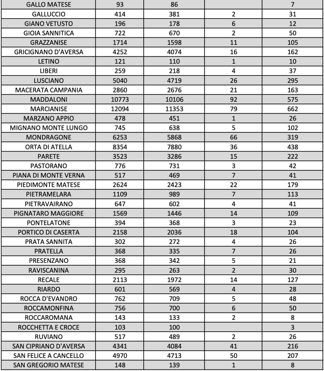 Tra le città più colpite troviamo Aversa con 669 casi ancora segnalati e Marcianise con 662.
