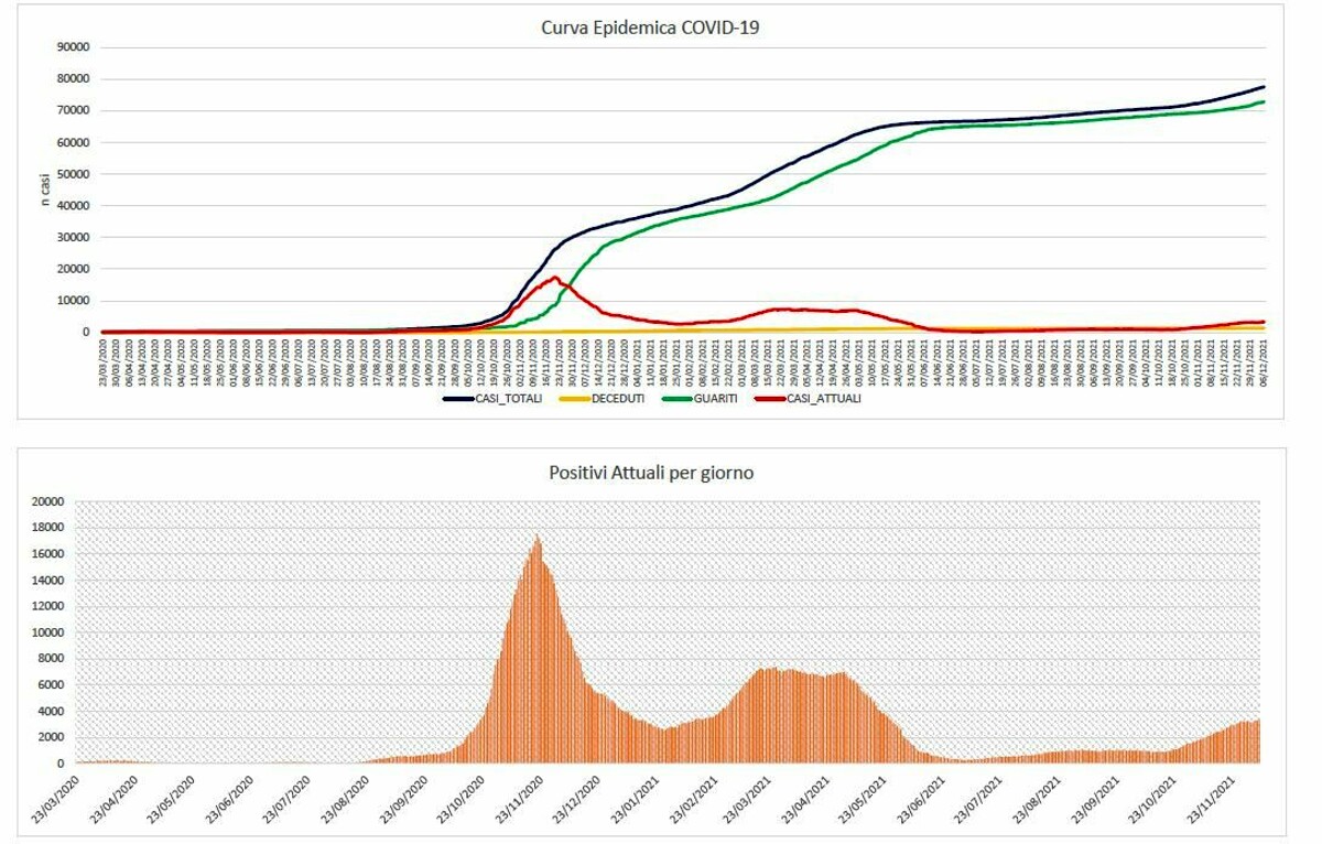 Il dato relativo agli attualmente positivi passa da 3308 a 3340, +32 rispetto a ieri.