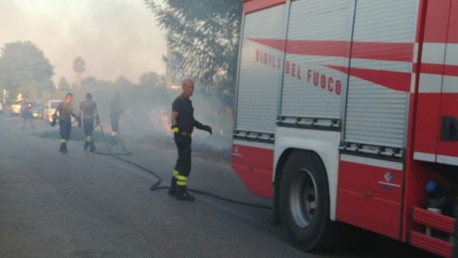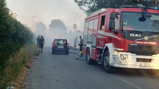 Devastante incendio sulla provinciale, ore di lavoro per i vigili del fuoco. L’ira del sindaco Natale