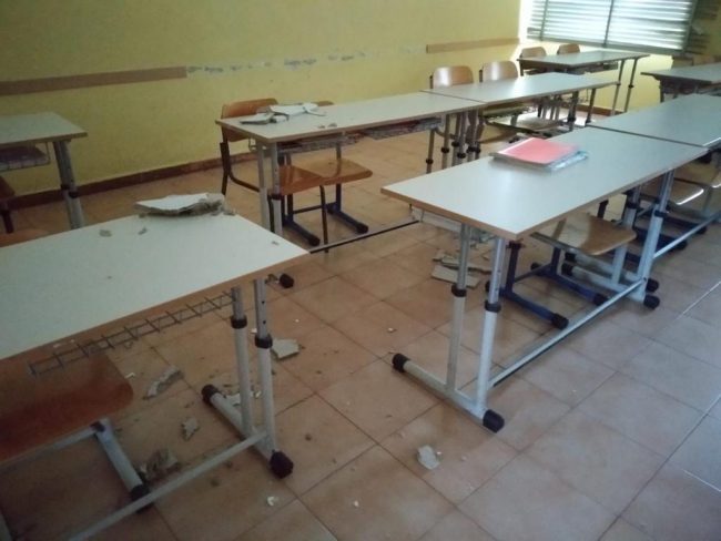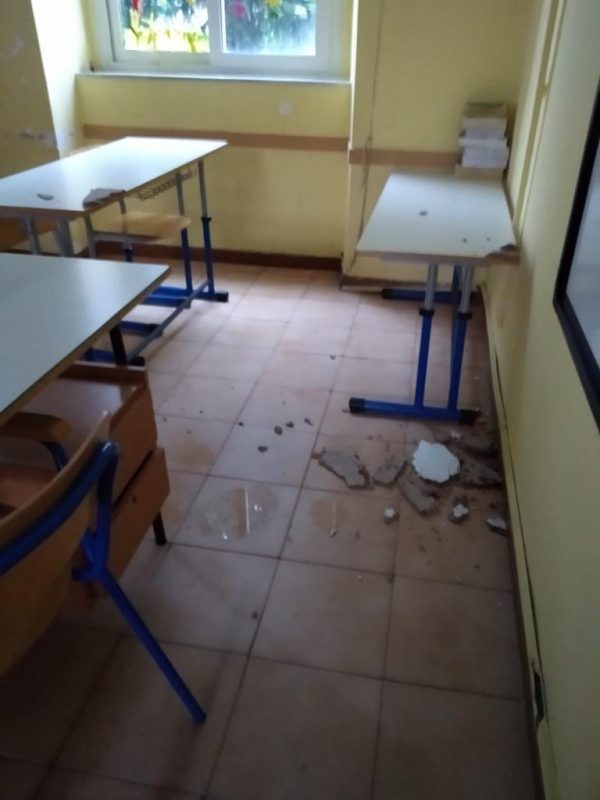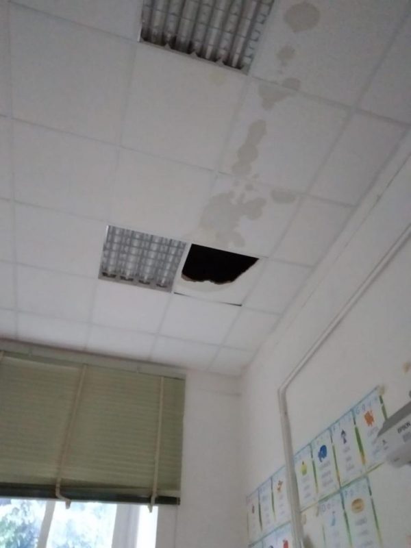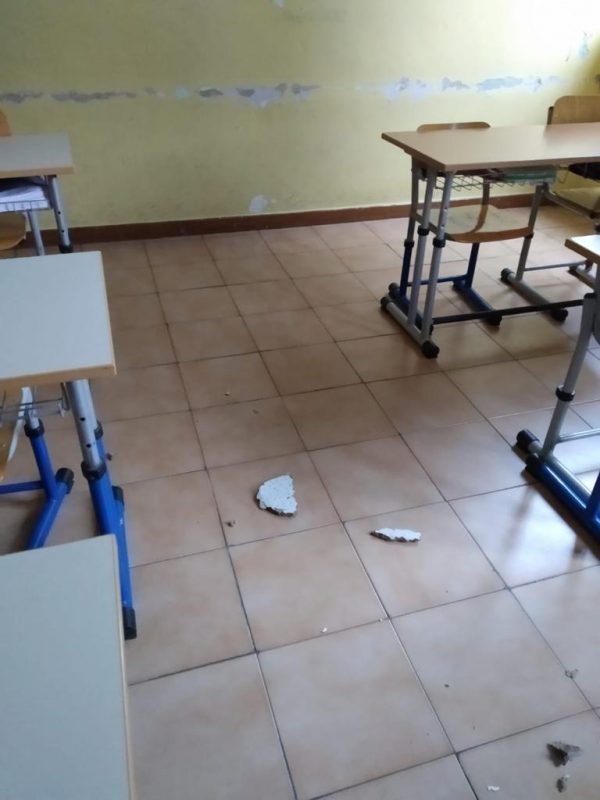 Rispetto all’anno scorso, la situazione è nettamente peggiorata. I problemi strutturali della De Amicis la espongono, da tempo, alle intemperie, che divengono strumenti in grado di creare pericoli. E se dodici mesi fa, le infiltrazioni d’acqua, malanno, ormai, incontestabile, producevano enormi macchie di umidità e muffe, ora , mancando una ben che minima attività di manutenzione ordinaria da parte del Comune di Caserta che, com’è noto, ha piena potestà sugli immobili che ospitano tutte le scuole primarie, oggi, naturalmente, ovviamente, non sorprendentemente, vengono giù le controsoffittature e la scuola De Amicis, anche questa volta usiamo l’avverbio “letteralmente”, cade, come abbiamo scritto prima, a pezzi.