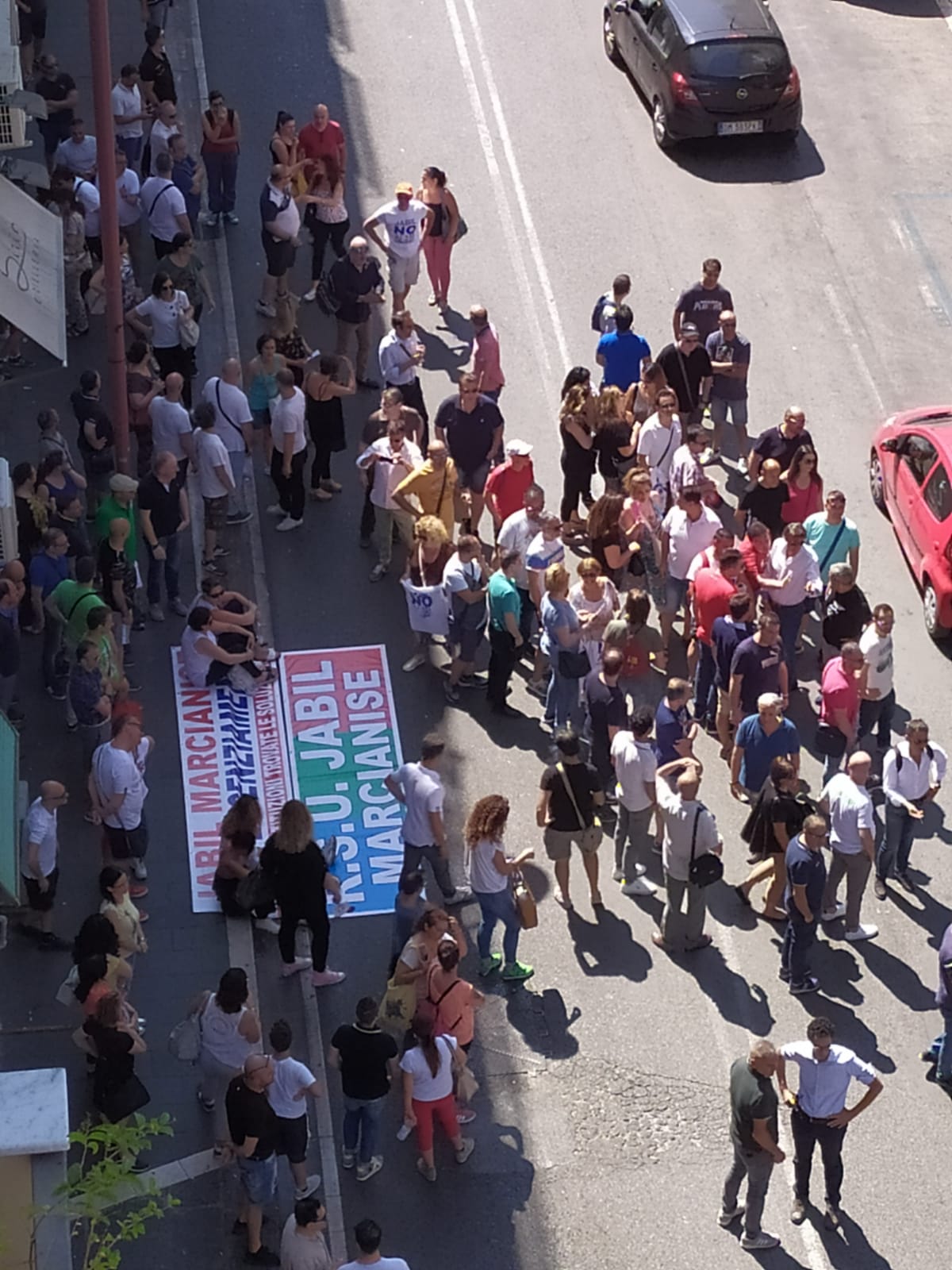 FOTO & VIDEO. CRISI JABIL. Operai inviperiti “assediano” a 40 gradi Confindustria e contestano Traettino. CHIUSA VIA ROMA