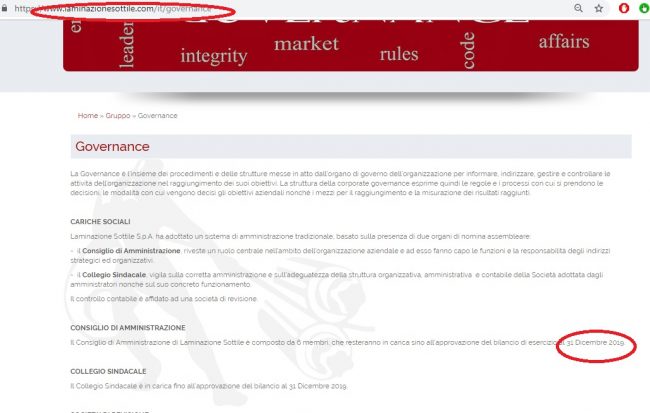 E’ specificato, a dimostrazione di una scelta volontaria di dare queste notizie e di non darne altre sui componenti del Cda, che l’organismo amministrativo scadrà il 31 dicembre 2019. Dunque si tratta di notizie immesse, al più, negli ultimi 3 anni.