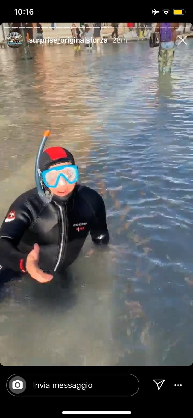 GUARDA IL VIDEO. Il “broker” Paolo Sforza si tuffa nell’acqua alta di Venezia: “Cerco i tasti del Mose…”