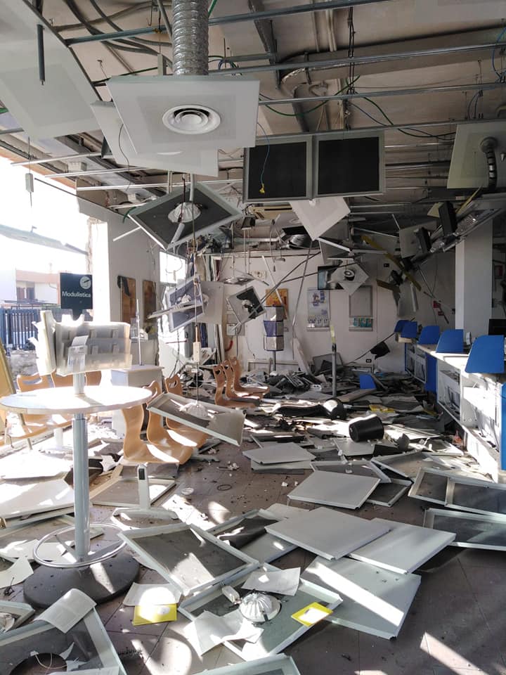 Questo ennesimo atto di criminalità avvenuto in paese, l’altra mattina, ha destato grande indignazione tra i cittadini, per la pericolosità dell’azione posta in essere. Infatti una banda di ladri specializzata per poter sottrarre il bancomat delle Poste Italiane, dell’ufficio di via Vittorio Emanuele, ha fatto esplodere un ordigno, mettendo a repentaglio l’incolumità dei residenti degli appartamenti sovrastanti l’ufficio. Un cittadino ha reso pubblico il video dell’esplosione durante le prime ore del mattino, le foto mostrano invece i gravissimi danni arrecati alla struttura e agli uffici, completamente distrutti e inagibili.