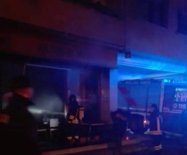 I pompieri sono ancora in opera per cercare di spegnere le fiamme. A prendere fuoco, nell’interrato, è stato il vano che contiene il motore che guida il condizionamento, quindi riscaldamento d’inverno e aria condizionate d’estate, del bar Flora.