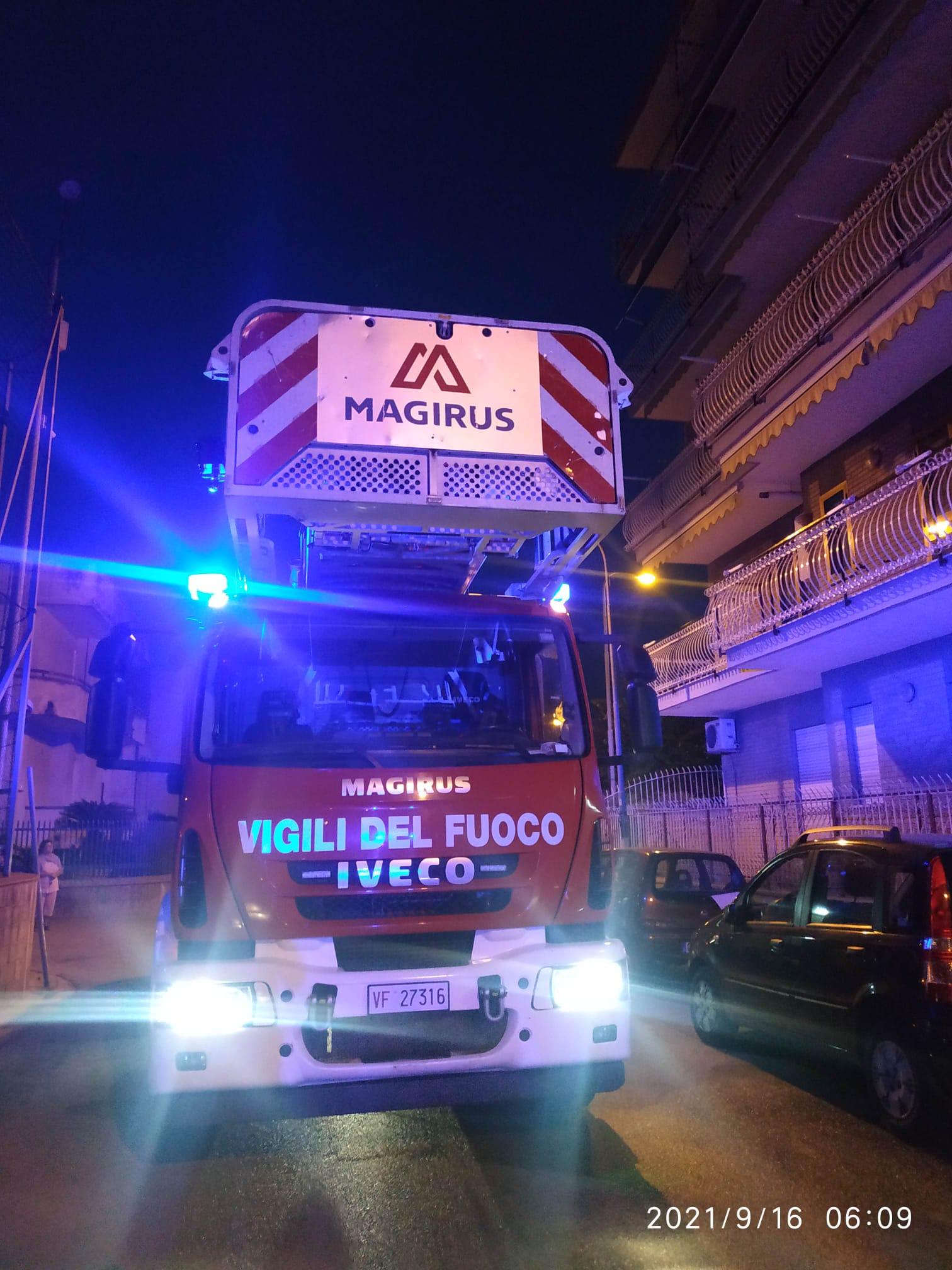 IL VIDEO E LE FOTO. Incendio all’alba, palazzina evacuata. Coppia salvata dai balconi