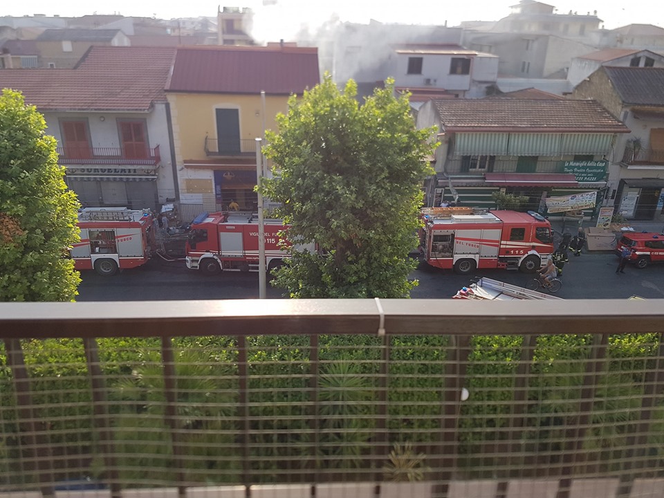 TEVEROLA (Lidia e Christian de Angelis) – Grave incendio in città, l’ombra del racket. Stamani intorno alle 7 del mattino un forte odore acre di bruciato ha invaso le abitazioni dei cittadini di via Roma a Teverola, dove delle grosse fiamme si sono sviluppate all’interno di un noto negozio di casalinghi di via Roma, come mostrano le foto e il video che pubblichiamo. I cittadini esasperati e terrorizzati hanno immediatamente allertato le forze dell’ordine e i vigili del fuoco per intervenire. Sul posto immediatamente sono giunte quattro autopompe dei caschi rossi per domare le alte e forti fiamme che si sprigionavano dall’esercizio commerciale,mentre i carabinieri hanno avviato le indagini per capire se si sia trattato di un incidente oppure di un atto intimidatorio, sentiti i titolari dell’attività. Al momento nessuna pista è esclusa anche se quella del racket, pare, la più accreditata, anche perché questo è l’ennesimo episodio che in pochi giorni si verifica nel territorio dell’agro aversano. Solo poco tempo fa sono stati incendiati un ristorante ad Aversa, un bar sulla variante ad Aversa e un parrucchiere sempre ad Aversa, troppo coincidenze per credere che siano solo incidenti e non vi sia la mano della criminalità organizzata dietro, che cerca di racimolare soldi per i propri affari loschi, sembra di essere tornati indietro nel tempo, a quando i clan per estorcere denaro ai commercianti li spaventavano con bombe ed incendi, vedremo gli inquirenti a quali conclusioni giungeranno. I cittadini sono esasperati per i continui incendi e roghi che stanno uccidendo le città.