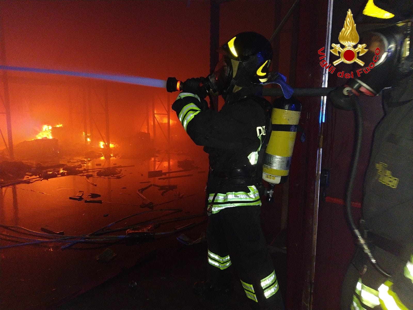 Particolarmente utile è stato l’utilizzo di un robot cingolato a comando remoto nelle operazioni di spegnimento, a causa della scarsa visibilità unitamente all’incertezza sulle condizioni di stabilità della copertura. Sono in corso le indagini per stabilire la natura del rogo.