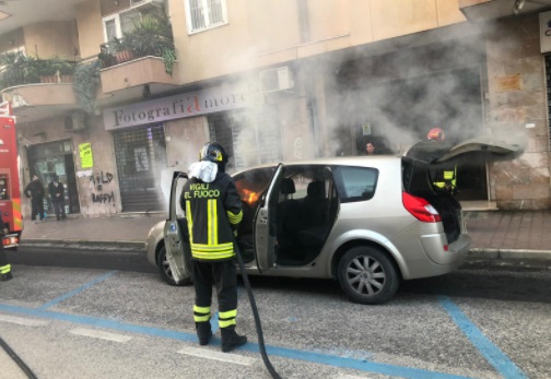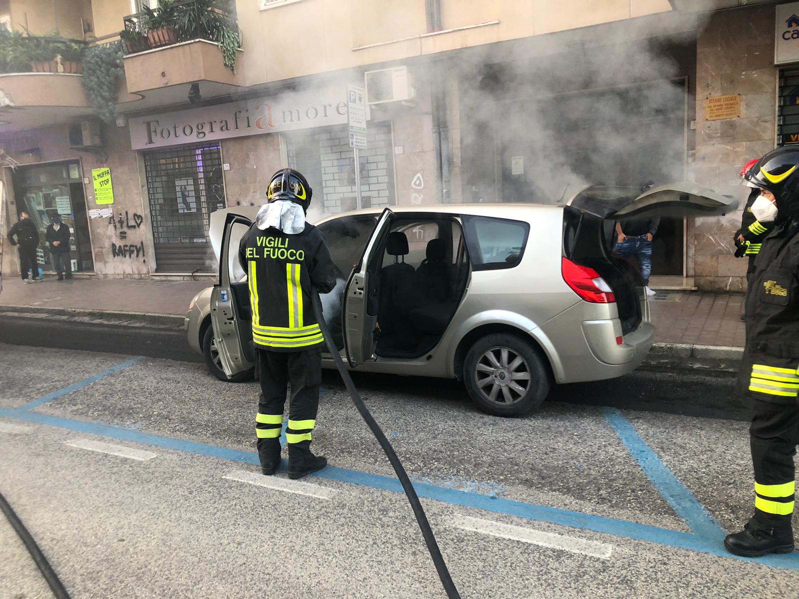 CASERTA – Paura stamattina in via GM Bosco a Caserta. Un’auto in transito ha cominciato a perdere fumo, spaventando gli occupanti che sono stati costretti a fermarsi e accostare lungo il marciapiede. Lanciato l’allarme, sul posto sono arrivati i vigili del fuoco del Comando provinciale di Caserta che hanno prontamente spento le fiamme. Non si registrano ferito, solo tanto spavento.