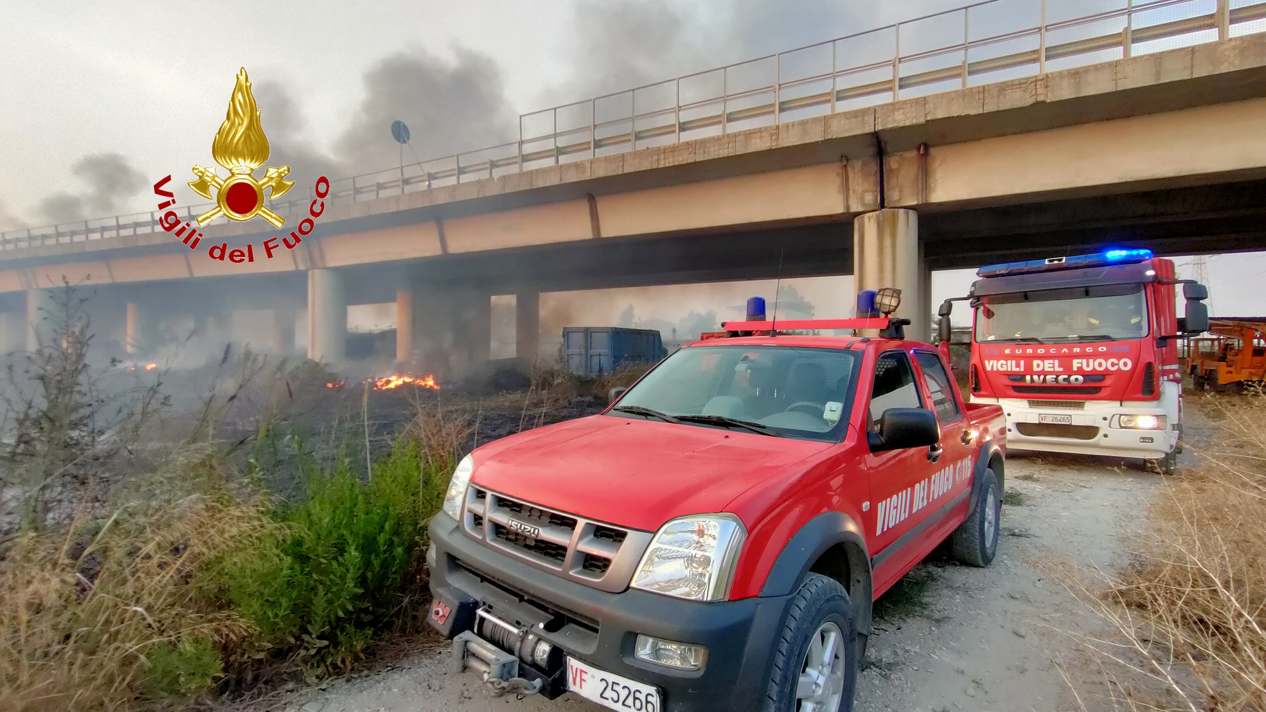 CASTEL VOLTURNO – E’ stato spento nella notte un vasto incendio che ha interessato a Castel Volturno un’ area incolta di circa 10 ettari nelle immediate vicinanze della Strada Statale 7 quater, nei pressi dell’uscita per il Villaggio Coppola. Le fiamme si sono sviluppate tra sterpaglie, rifiuti, tra i quali elettrodomestici, pneumatici, mobili ed alcune roulotte abbandonate. Sul posto sono intervenuti i Vigili del Fuoco di Caserta con una squadra AIB , specializzata per gli incendi boschivi, del distaccamento di Mondragone, con un’autobotte del distaccamento di Aversa.