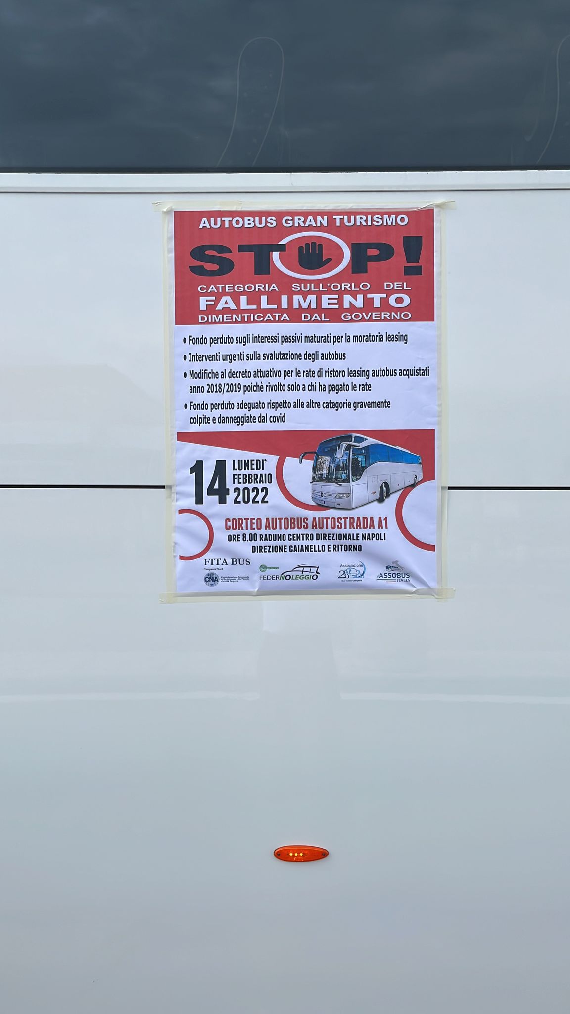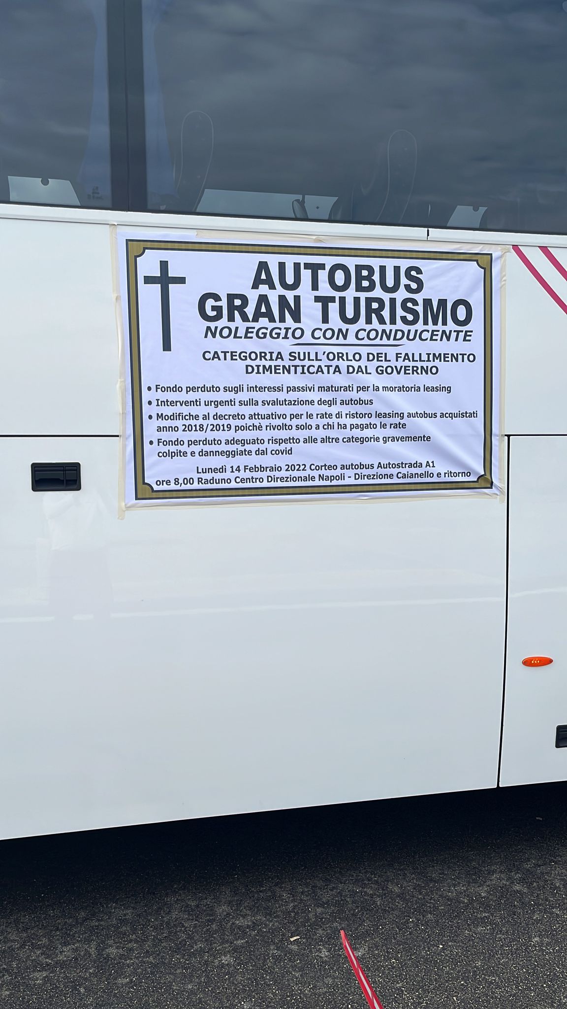 CAIANELLO – Cento autobus turistici e un carro funebre in testa al corteo sono partiti questa mattina da Napoli e hanno bloccato l’autostrada del Sole fino a Caianello. All’iniziativa partecipa anche Confesercenti – Federnoleggio Campania. Si sono dati appuntamento questa mattina alle 8 in via Emanuele Gianturco, a Poggioreale, angolo via Costantino Grimaldi, all’altezza della grande rotonda dalla quale poi si accede alla Tangenziale di Napoli e all’autostrada.