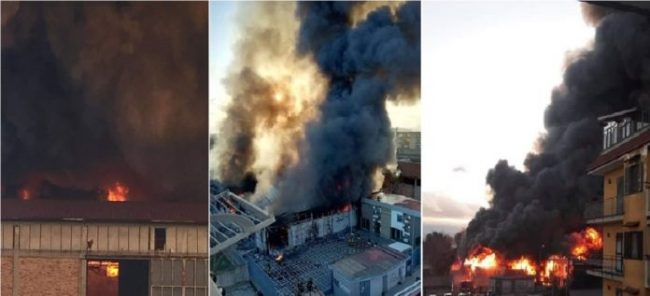 ORTA DI ATELLA/CESA – Un grosso incendio è divampato questa mattina nel capannone di stoccaggio di plastica e alluminio del gruppo Cerbone in via Ss Sannitica, nei pressi di via Indipendenza a Casoria. Colonne di fumo sono visibili a diversi chilometri di distanza e il vento sta sospingendo l’altissima nube tossica nell’agro. Spavento per i residenti, che si sono riversati in strada per evitare qualsiasi rischio per la loro incolumità. Sul posto, per domare le fiamme, sono al lavoro già da ore diverse autobotti dei vigili del fuoco. Ancora da quantificare i danni, al momento non si registrano feriti.