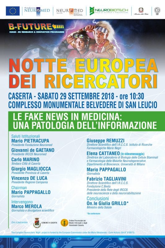 La conclusione di questa densa settimana sarà infine segnata da un evento perfettamente inserito nel panorama attuale del dibattito scientifico italiano: sabato mattina, alle ore 10,30, il Complesso Monumentale Belvedere di San Leucio, a Caserta, ospiterà Il convegno “Le fake news in medicina: una patologia dell’informazione”.