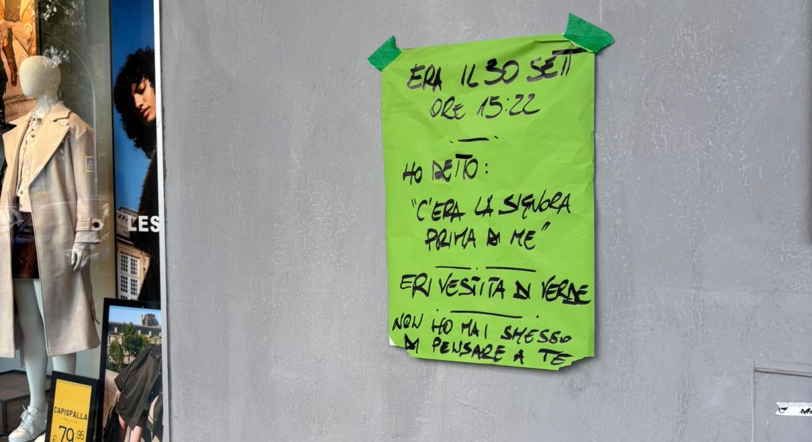 L’autore del messaggio sembra voler ritrovare quella donna, o forse solo farle sapere che quell’incontro sfiorato non è stato dimenticato. Un gesto che ha il sapore romantico delle lettere anonime, ma anche qualcosa di moderno e virale, se la rete deciderà di raccogliere l’invito implicito.