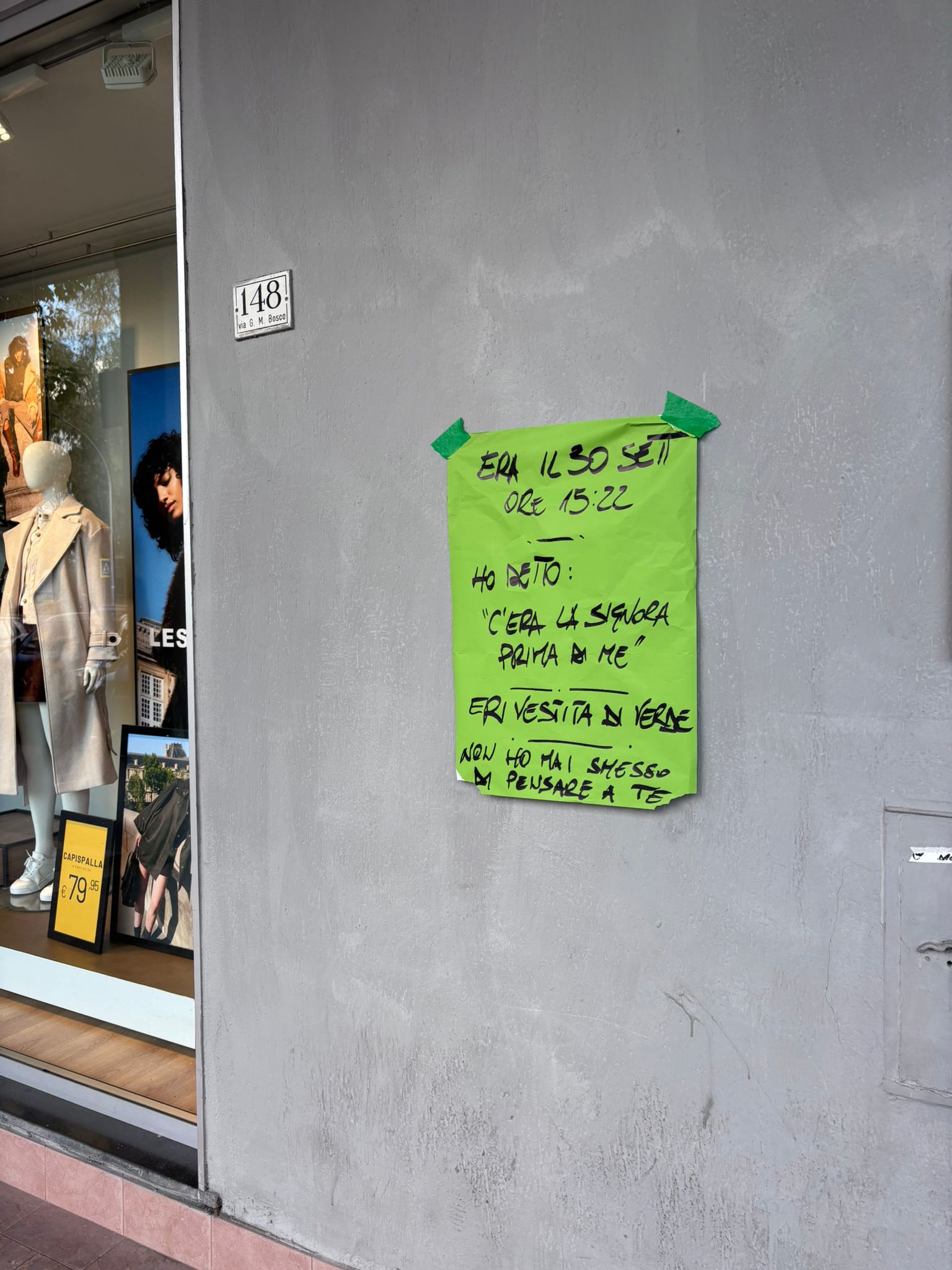Quel giorno, il 30 settembre alle 15:22, qualcosa dev’essere successo: uno sguardo, una frase gentile (“C’era la signora prima di me”), forse un attimo di imbarazzo. Una di quelle piccole scene quotidiane, spesso trascurate, ma che – a quanto pare – per qualcuno ha lasciato un segno indelebile.