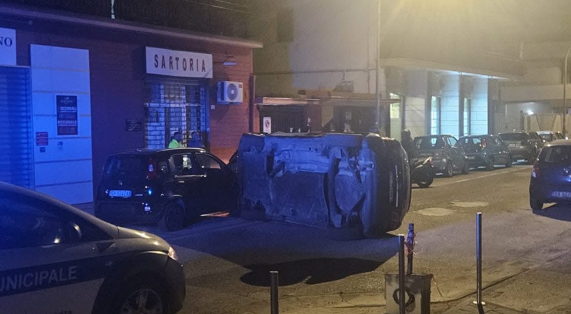 LA FOTO. CASERTA. Paura in Viale Lincoln: perde il controllo e si ribalta con l’auto