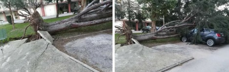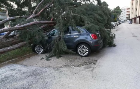 Il vento forte ha anche causato la caduta di un albero, precipitato su un’auto, come si vede dalle foto, scattate e poi pubblicate sui social.