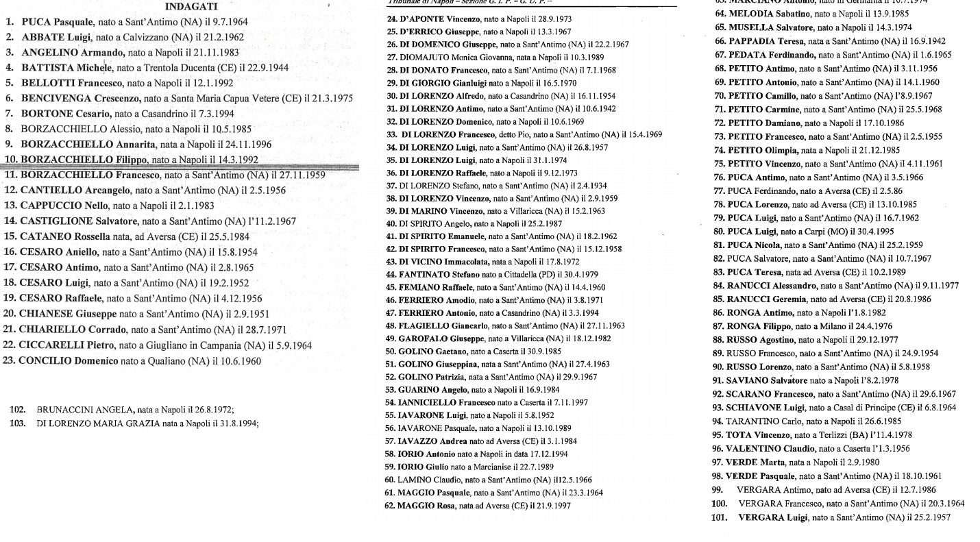 LA RETATA DI BOSS, COLLETTI BIANCHI E DEI CESARO. I nomi di tutti i 103 INDAGATI. Ci sono anche 15 casertani. E al comune di ORTA…