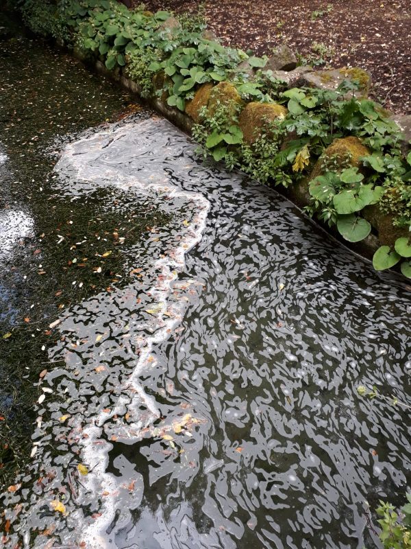Caserta (pasman) – Pubblichiamo le foto inviateci da un lettore allarmato, scattate nella giornata di ieri e che ritraggono le acque del ruscello della Peschiera grande della Reggia, il quale teme che la schiuma che si vede in superficie sia l’effetto di un inquinamento.