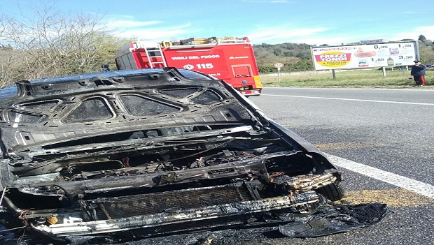LE FOTO. Auto in fiamme. Arrivano i vigili del fuoco