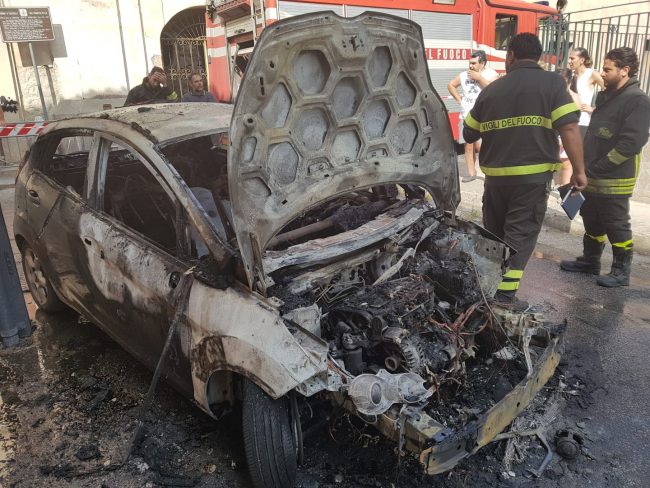 LE FOTO. Auto incenerita dalle fiamme. E’ giallo sulle cause