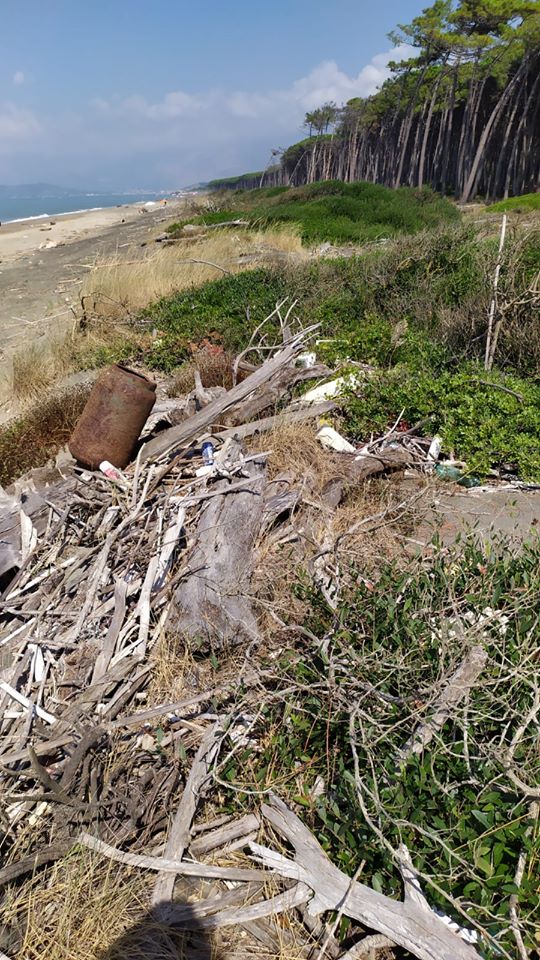 Questo posto potrebbe essere un paradiso, un luogo turistico invidiato da tutti, ed invece è una discarica a cielo aperto, a cominciare dalla pineta fino ad arrivare alla spiaggia.