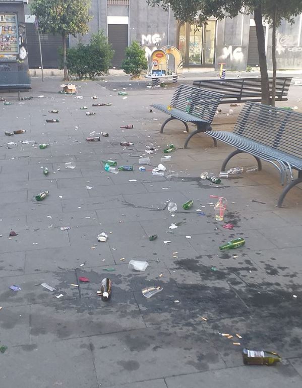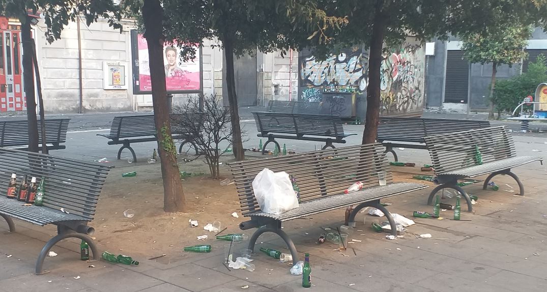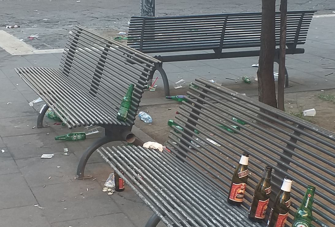 LE FOTO CASERTA. Altro che virus, qui ci vuole proprio l’asteroide! Guardate lo schifo lasciato in piazza Correra dopo la movida