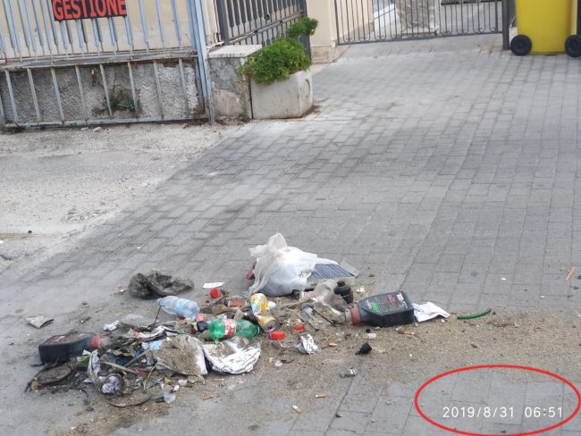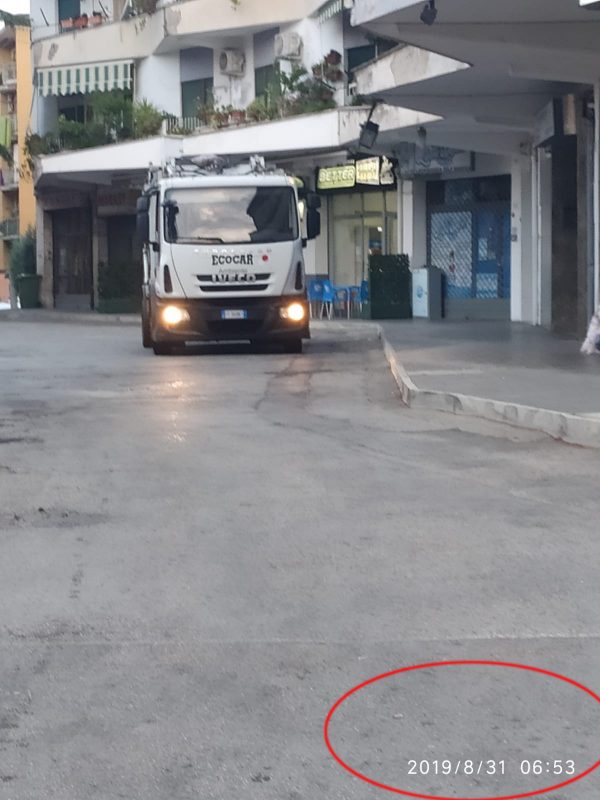 Subito dopo, siccome la scuola è quella di Peppe la porchetta, non è che sono andati via, facendo finta di non aver visto i rifiuti lasciati in vista e in bella posta, ma hanno parcheggiato il camion e in orario di servizio, se ne sono andati a prendere il caffè.