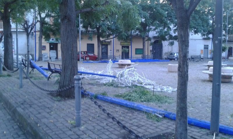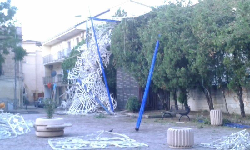 Giusto per sorridere un pò, una roba del genere è capitata a Caserta ieri, in quel di San Benedetto. Le luminarie della recente festa sono state trovate, stamattina, in queste condizioni. Lontane dai luoghi in cui erano state riposte e riaffiorate dal mare d’acqua, che ha sommerso la città capoluogo, ieri pomeriggio, a causa della tempesta di pioggia e di grandine di cui ci siamo occupati in un lungo live.