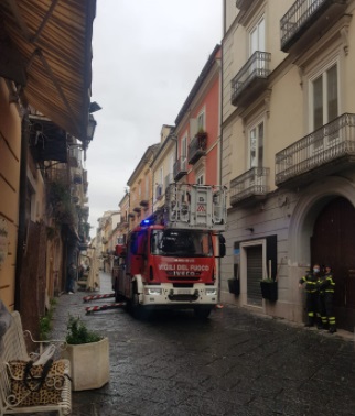 I caschi rossi si sono poi spostati in via Vico dove hanno eseguito una verifica interna di tenuta dei solai di un’altra palazzina, dopo il distacco di parti di intonaco, dovuto ad infiltrazioni di acqua.