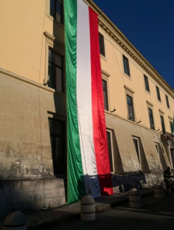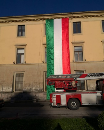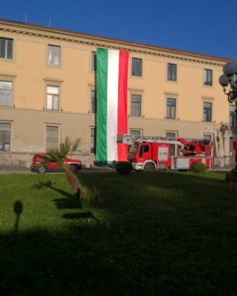 CASERTA – Si ripete la scena del tricolore che veste a festa il palazzo della prefettura, ma è sempre un bel vedere. Il 25 aprile inizia con il “bel vedere” regalato alla città dai vigili del fuoco del Comando provinciale di Caserta. Non è la prima volta ma è sempre molto bello.