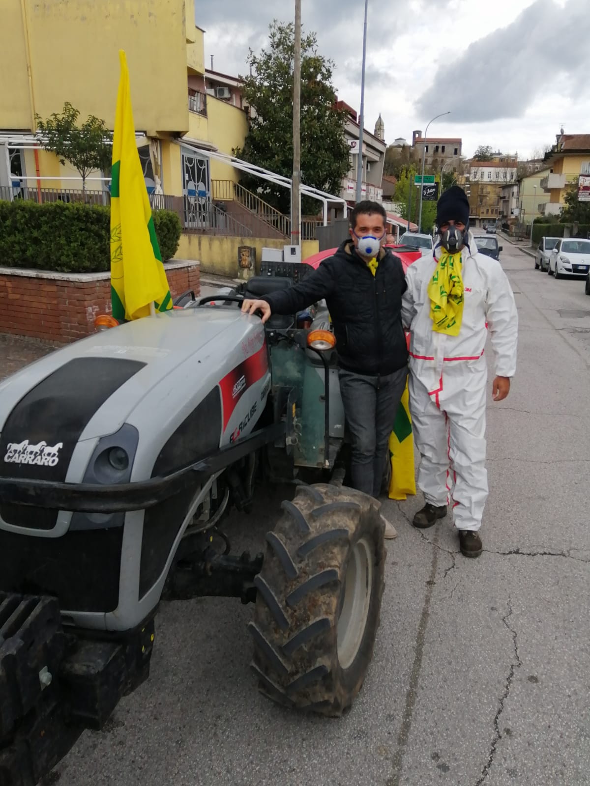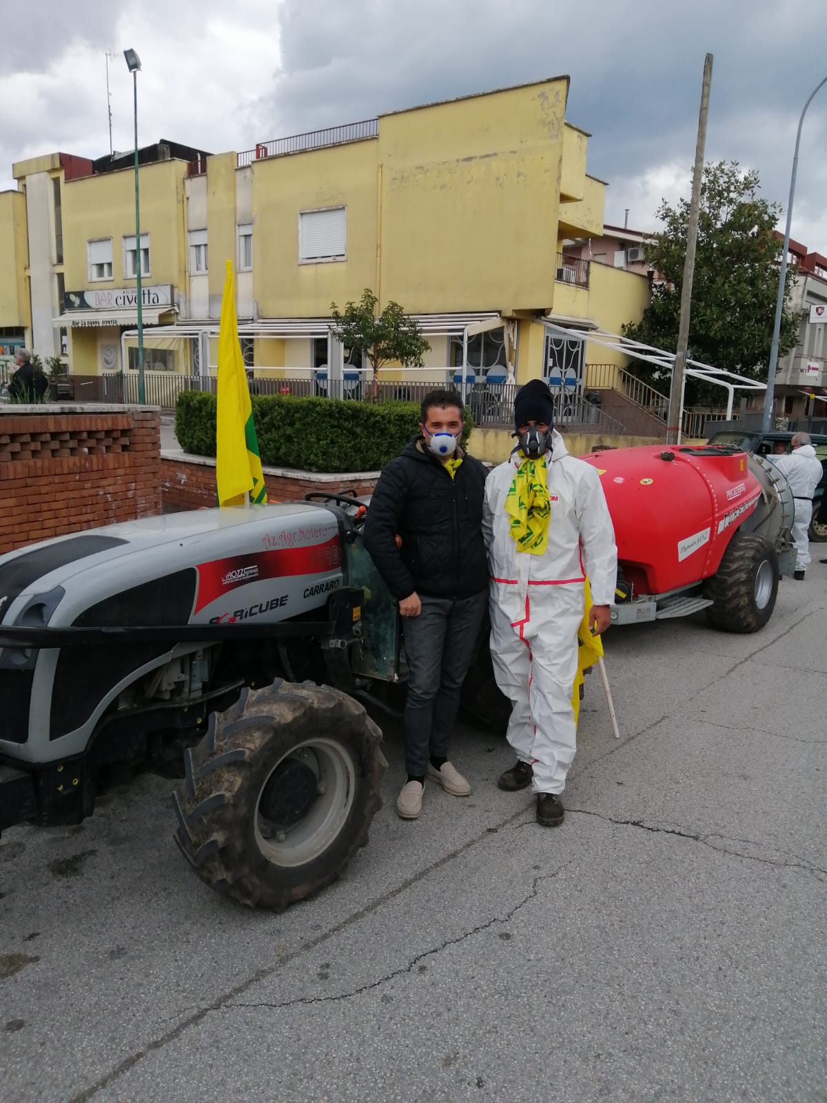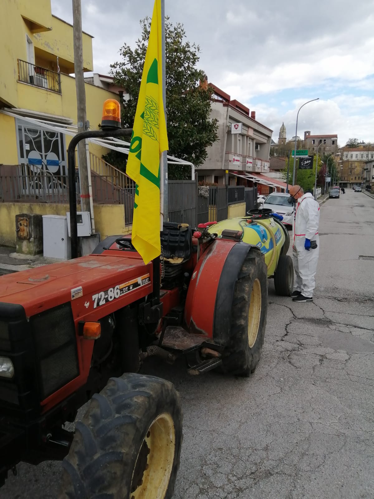 LE FOTO, CORONAVIRUS TEANO. Maxi operazione di sanificazione della Coldiretti di De Simone