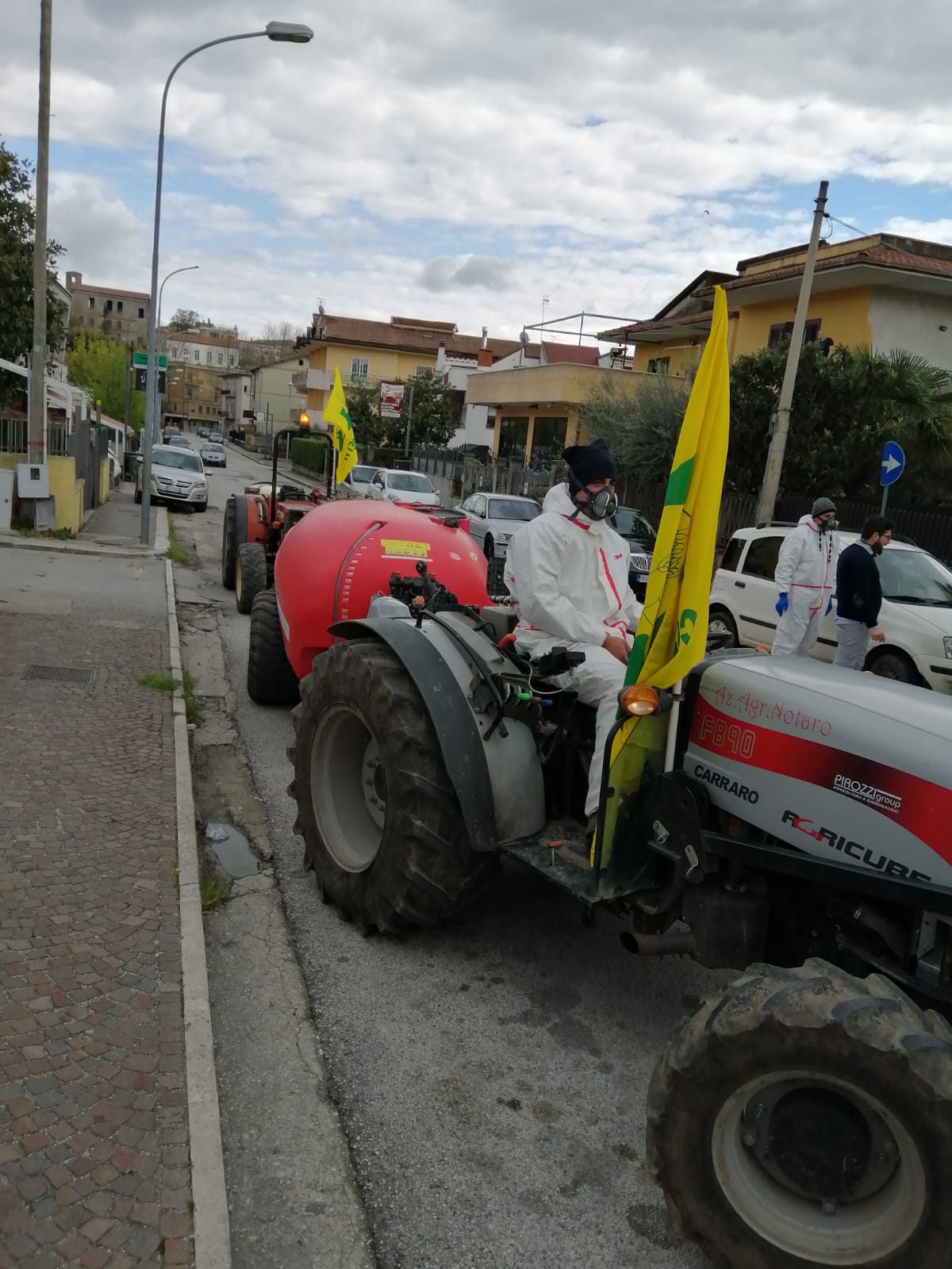TEANO – Una mobilitazione reale quella del Coldiretti di Teano di cui è presidente Tommaso De Simone, che, com’è noto, esercita, da anni, anche la guida della Camera di Commercio in provincia di Caserta. Un lavoro certosino di sanificazione per il quale sono stati mobilitati tanti iscritti e tanti mezzi.
