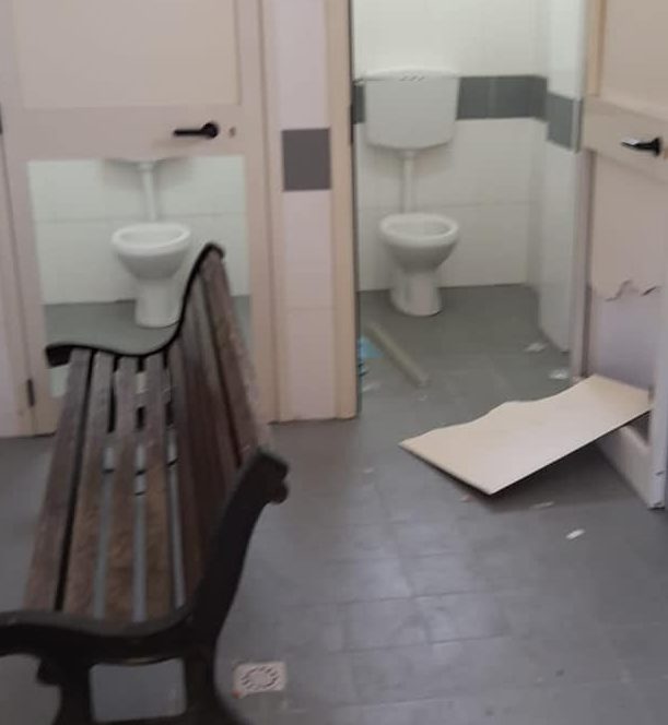 VILLA LITERNO (Lidia e Christian de Angelis) – L’altra notte una banda di balordi ha preso di mira gli arredi e i bagni della Villa Comunale di Villa Literno, rendendola inagibile.