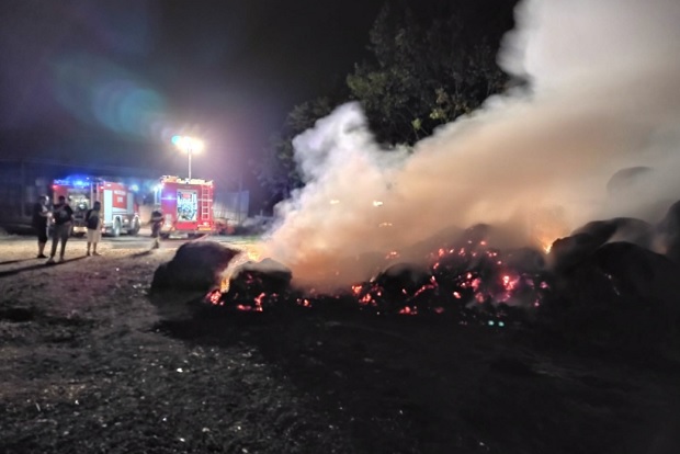 LE FOTO. Fiamme devastano un fienile. Vigili del fuoco al lavoro senza sosta