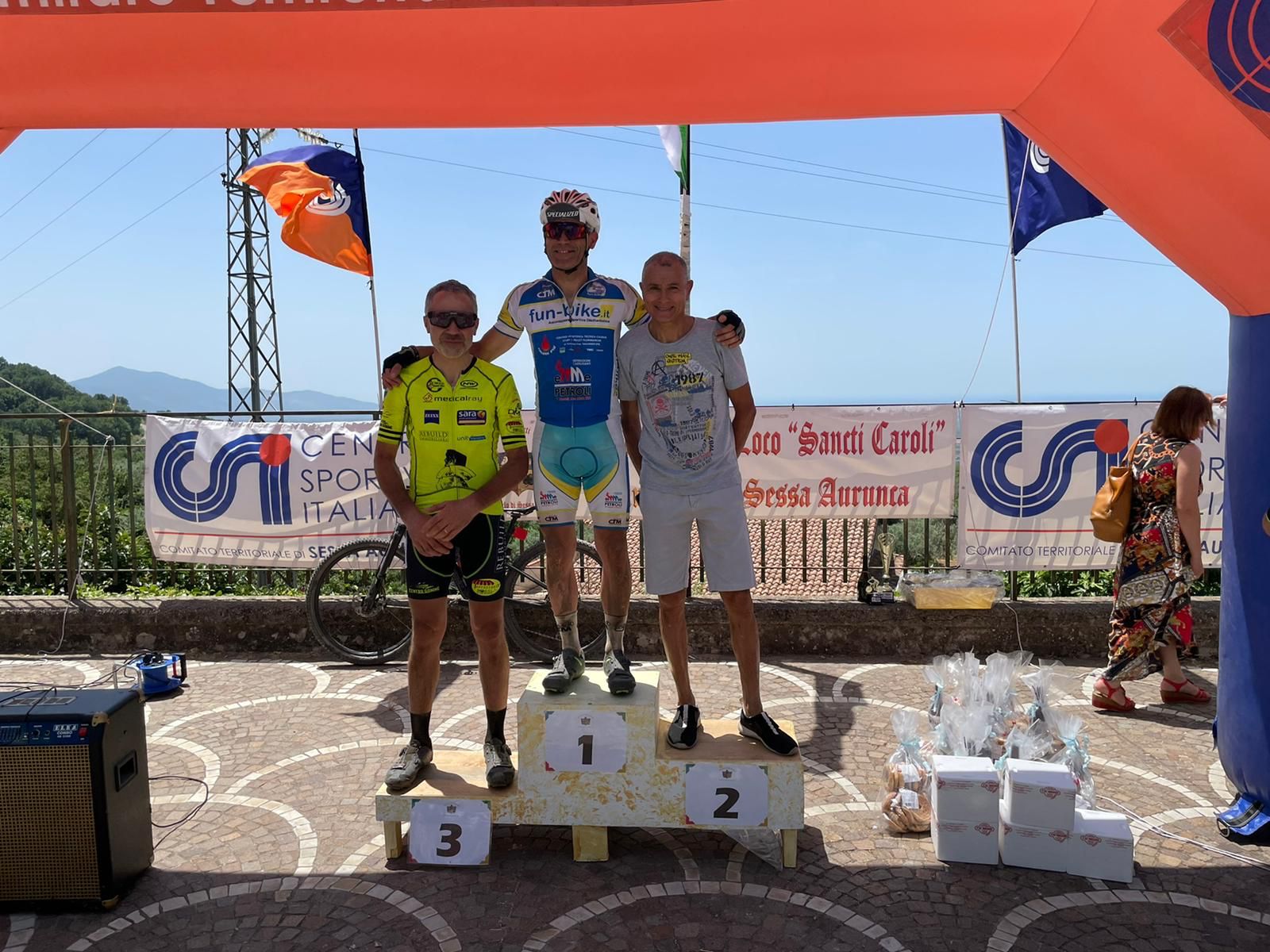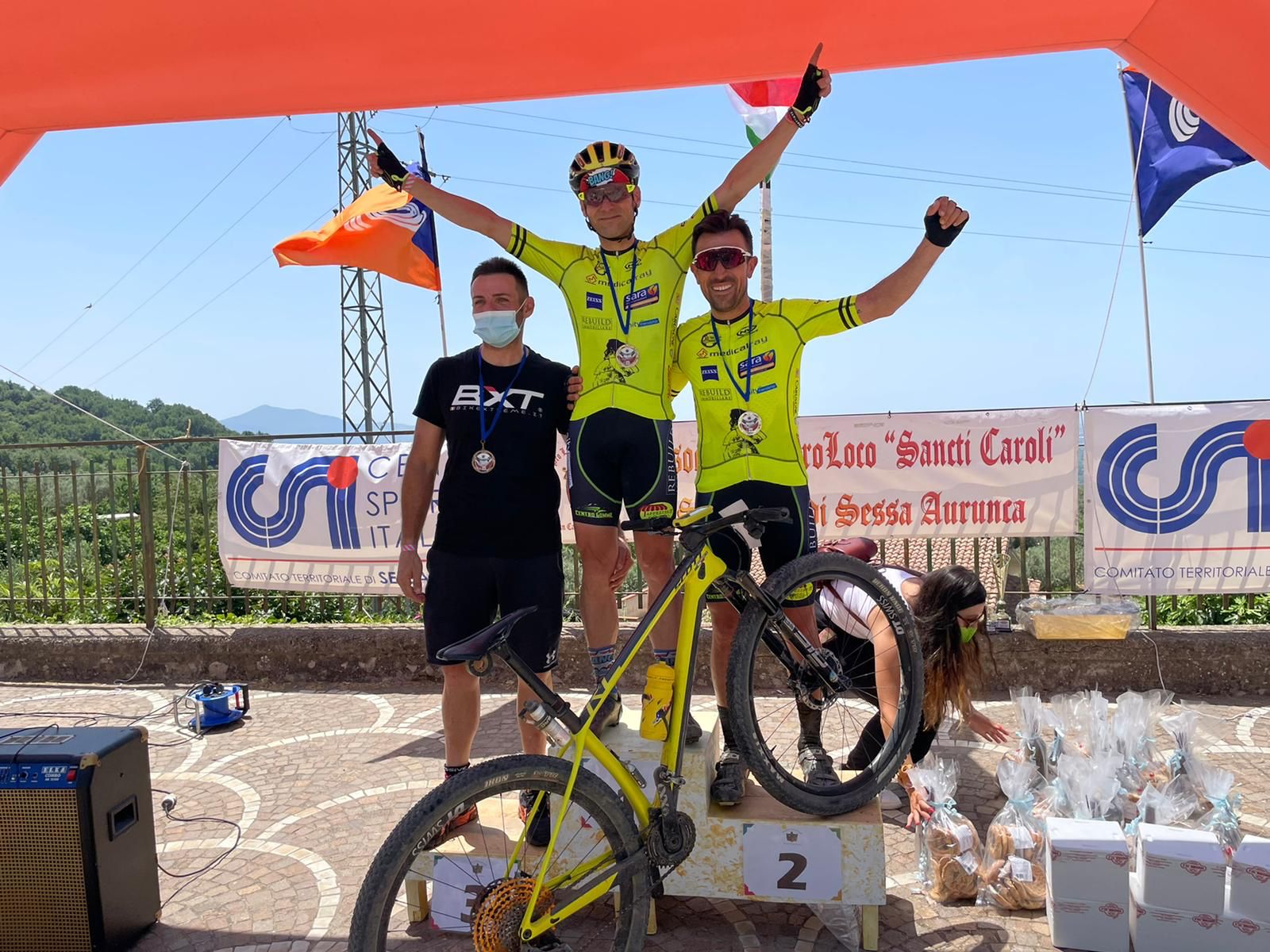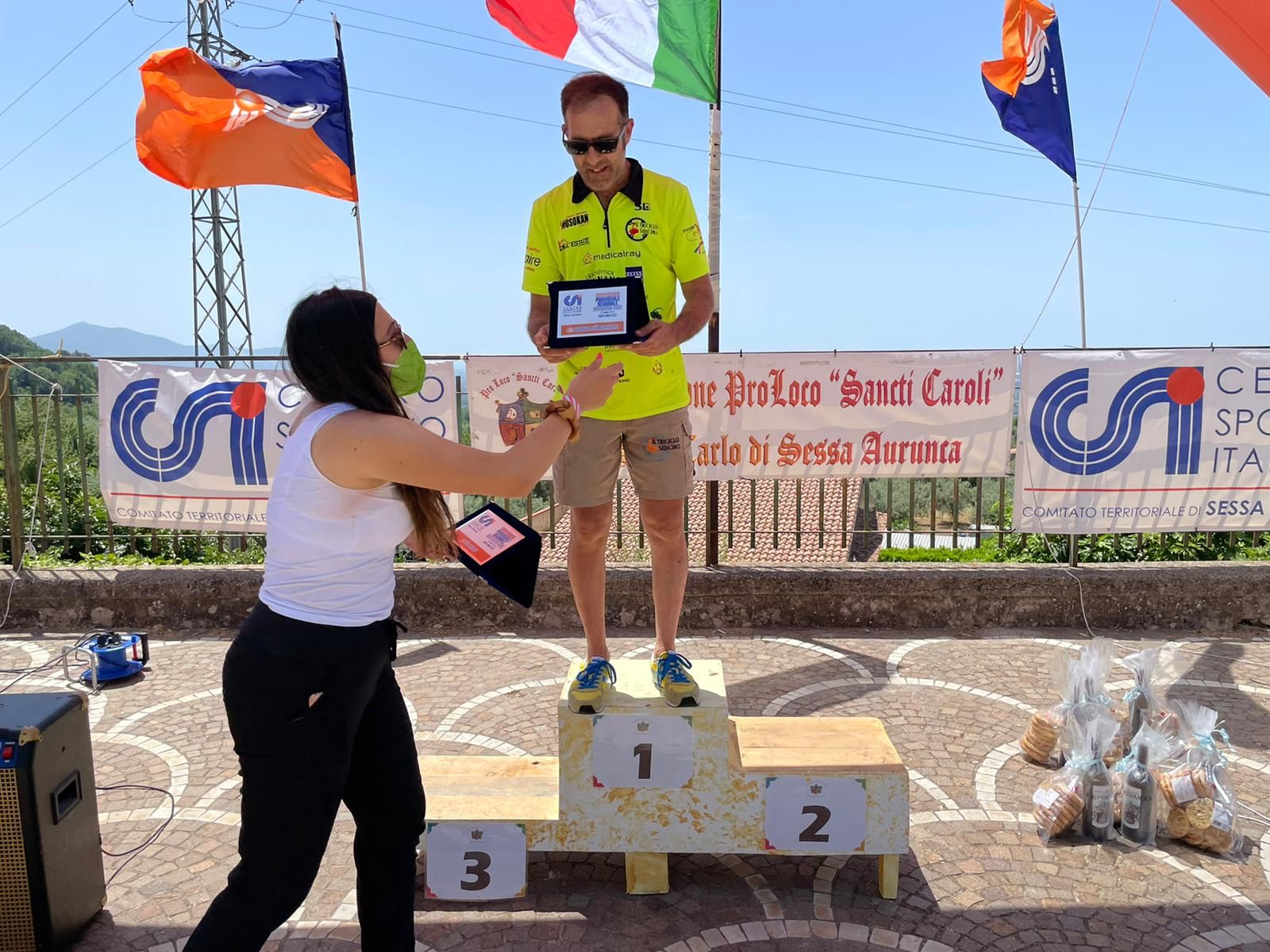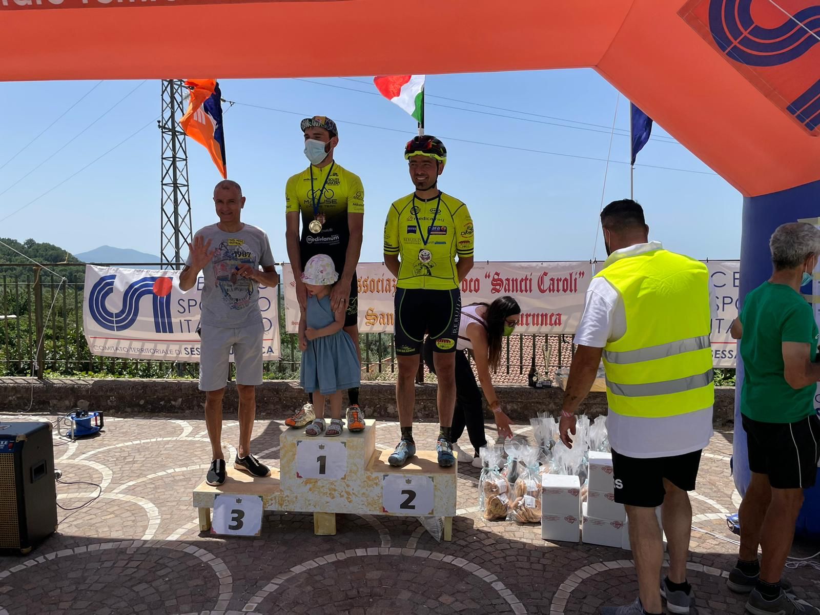 TEANO/SESSA AURUNCA – (Pietro De Biasio) Ieri, domenica 27 giugno, è andata in scena la gara di mountain bike XCO Sancti Caroli edizione 2021. La terza tappa del MTB RACE “Circuito Alto Casertano” si è svolta a San Carlo di Sessa Aurunca in una favolosa (e caldissima) giornata di sole che ha contribuito a una bella festa organizzata dalla Pro Loco “Sancti Caroli”. Il tracciato della gara di quattro giri per una lunghezza di 6,8Km e un dislivello di 220m (tra sterrato e percorsi all’interno del centro storico) è piaciuto molto ai numerosi partecipanti in modo particolare al team corse di Teano “Il Triciclo Sidicino” che è riuscito ad imporsi e a centrare molti podi. I “ragazzi” del Presidente Pasquale Bove hanno strappato con prestazioni individuali impeccabili il titolo “best team” dell’evento. Gli agguerriti portacolori sidicini si sono dati battaglia su un percorso super collaudato che ha messo a dura prova le proprie abilità tecniche di guida: 1 posto assoluto Carmine De Angelis, Acciardo 1 (Cat. M3), Cestrone M. 2 (Cat. M3), Caliendo 2 (Cat.M.2), Di Miele 3 (Cat. M1) e Montaquila 3 (Cat. M1).