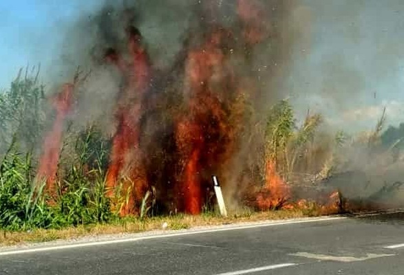 MONDRAGONE (red.cro.) – In queste ore ha preso il via un enorme incendio di canneti e sterpaglie sulla strada statale Domiziana, tra il km 23.400 e 24.400.