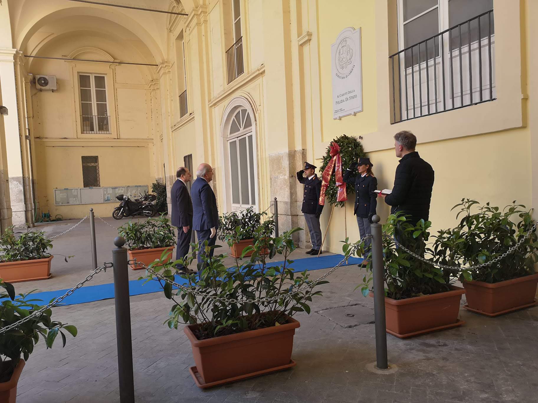 A Caserta il Questore Antonio Borrelli e il Prefetto Raffaele Ruberto hanno accompagnato la deposizione della corona dinanzi alla lapide commemorativa delle donne e degli uomini della Polizia di Stato caduti nell’adempimento del Dovere, alla presenza di una rappresentanza di Funzionari ed operatori della Questura di Caserta, che hanno partecipato alla celebrazione nell’assoluto rispetto delle norme di distanziamento sociale imposte per salvaguardare la salute di tutti.