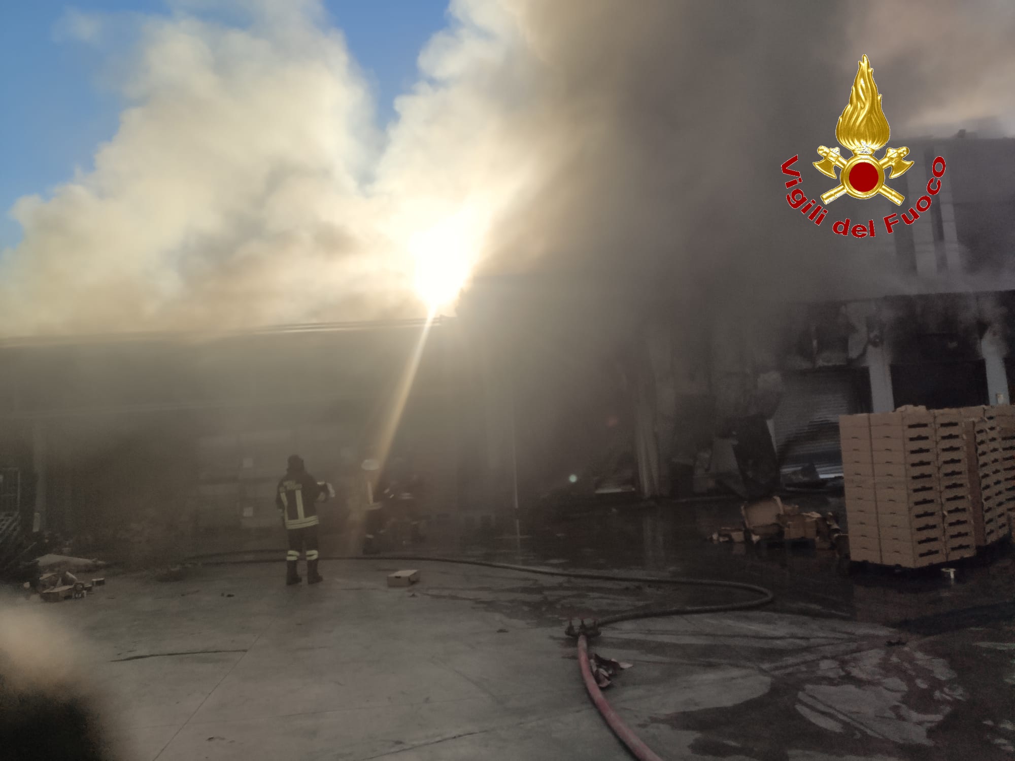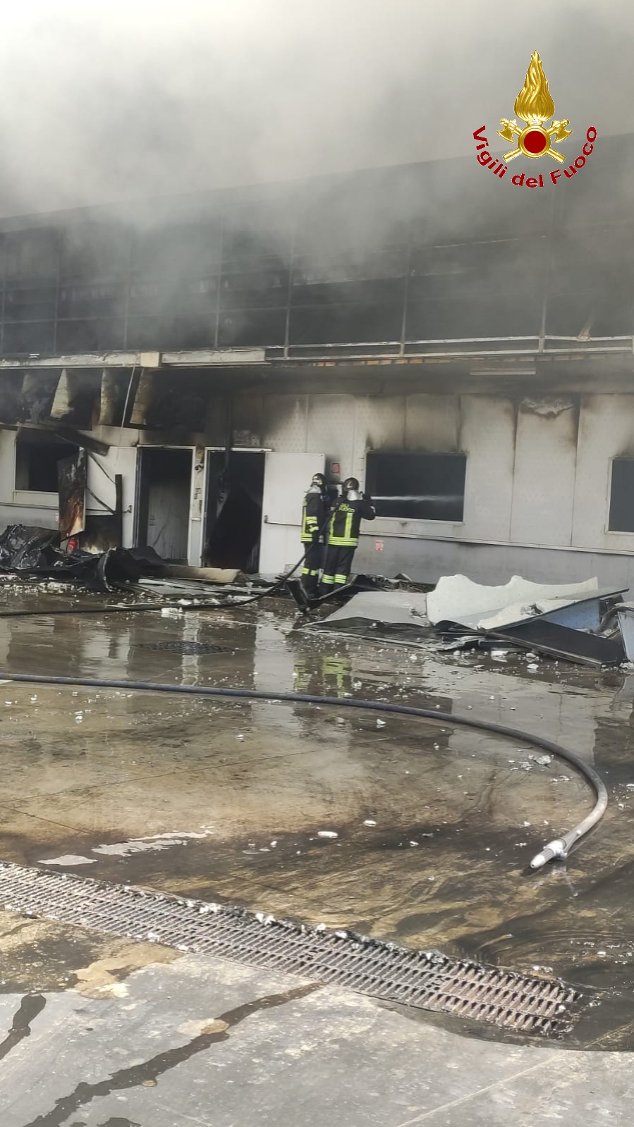 LE FOTO. L’incendio nel deposito carni. 2.000 mq di superficie avvolta dalle fiamme