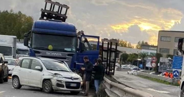 LE FOTO. MARCIANISE. Si scontrano un tir e una Panda, carico in strada e traffico in tilt