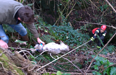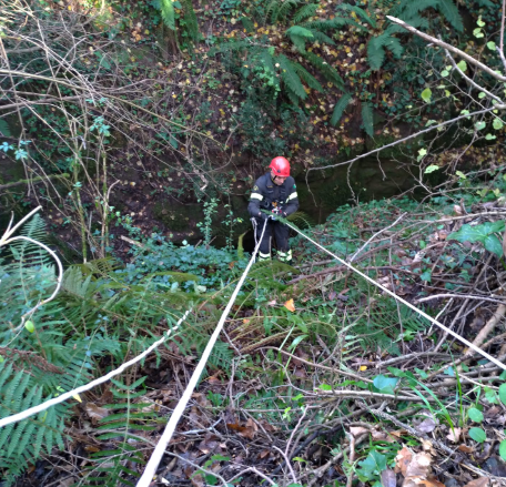 LE FOTO. Miracoloso salvataggio di un cane da caccia caduto in un dirupo